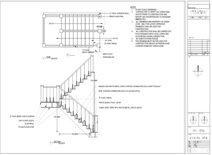 These stairs were designed for my Detailing class at Sheridan College. The goal of the assignment was to design a unique staircase that follows specific safety guidelines as-well to being well versed with the OBC. Software Used: AutoCAD.