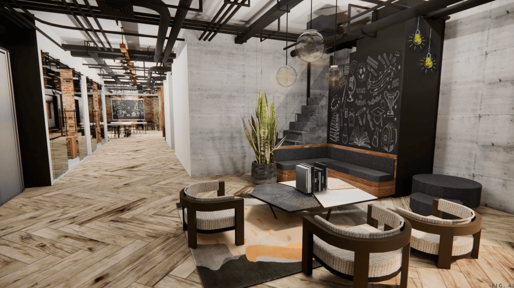 The Social Lab was designed as a concept for a non-profit building using LEED to guide our materiality for the project. In groups, we were assigned to create floor plans and mood boards to create a concept for the non-profit. This was created using AutoCAD, SketchUp, and renderings made through Enscape software to provide a concept design for an after school program.