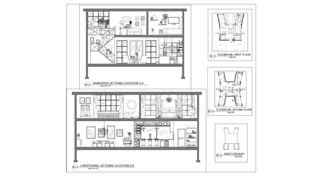 The Gemini House Design Concept was created for my Studio Design class. The objective of the assignment was to create a house inspired by the client. The parti diagram is in the shape of a Gemini. The gemini sign represents twins. This house was designed as an homage to her family life. Software used: AutoCAD, InDesign.