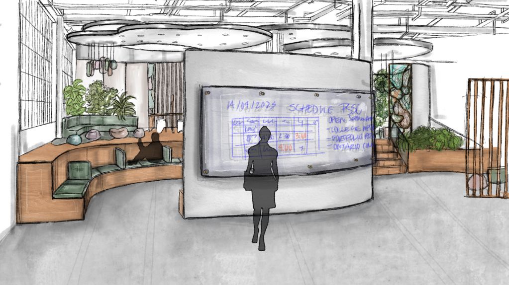 The Post Secondary Success Centre was designed for my Advanced Studio Class as my fourth year Thesis. The sketch above is a continuation of the materiality aspect of the concept building. To preview the full four concept materiality sketches click on the image above.
